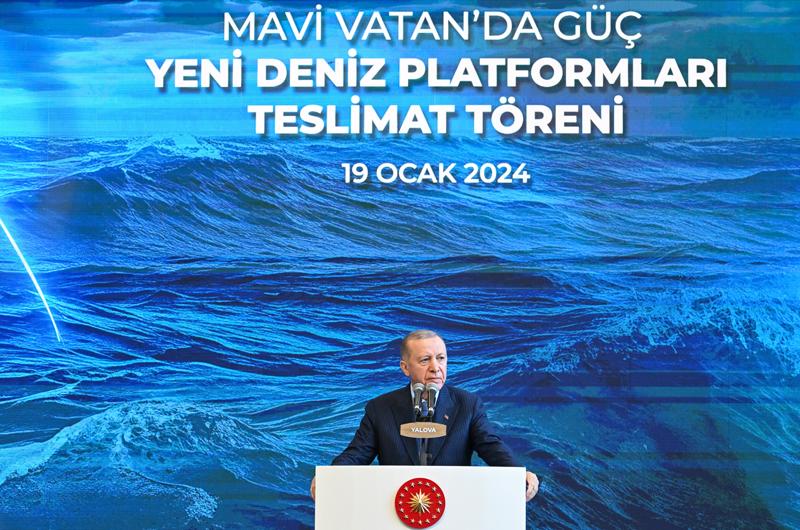 Cumhurbaşkanı Erdoğan, Yalova Sefine Tersanesi'nde Mavi Vatan'da Güç: Yeni Deniz Platformları Teslimat Töreni'nde yaptığı konuşmada, çalışmalarını Barbaros Hayrettin Paşa'nın "Denizlere hakim olan, cihana hakim olur." sözünü şiar edinerek yürüttüklerini söyledi.