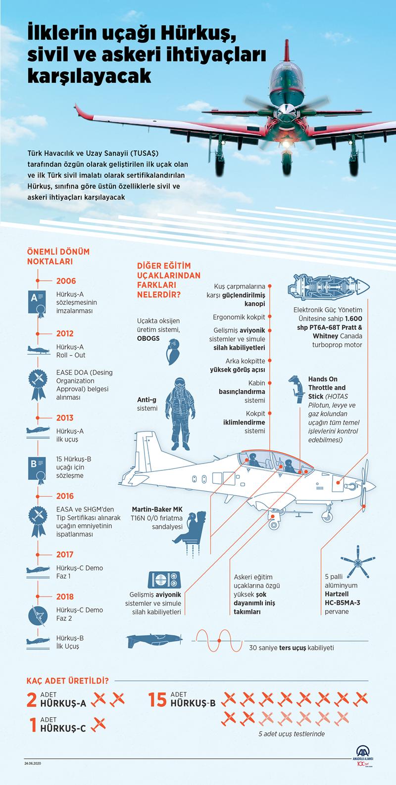 Türk Havacılık Uzay Sanayii, temel, tekamül uçuş eğitimi ve savaş pilotu harbe hazırlık uçuş eğitimleri arasındaki tüm kademelerde kullanılmak ve zorlu operasyonlarda yakın hava desteği görevlerini yerine getirmek üzere yeni nesil gelişmiş eğitim ve hafif taarruz uçağı HÜRKUŞ'u geliştirdi.