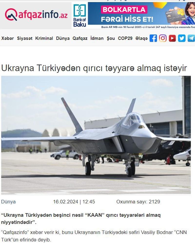Azerbaycan Kafkas İnfo haber sitesi, KAAN'ın Türkiye'nin en önemli teknoloji projelerinden biri olduğuna vurgu yapıldı. Ukrayna'nın Türkiye'den KAAN savaş uçakları istediğini yazdı. Report enformasyon ajansı ise, Rusya'nın KAAN için Türkiye'ye iş birliği teklifinde bulunduğunu ileri sürdü.