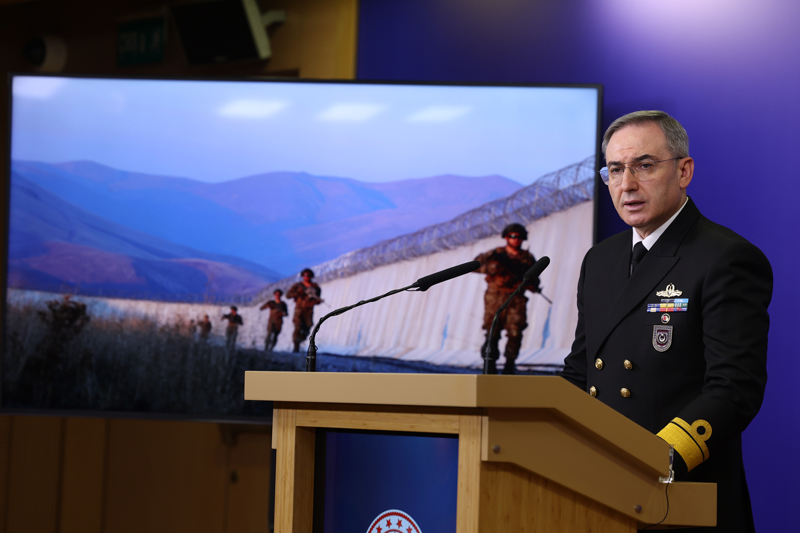 Tuğamiral Aktürk, hudutların, Cumhuriyet tarihinin en yoğun tedbirleri ve tesis edilen kademeli güvenlik sistemiyle uluslararası standartlarda korunduğunun altını çizerek, "Son bir haftada yasa dışı yollarla geçmeye çalışan 1'i terör örgütü mensubu olmak üzere 149 şahıs yakalanmış, 1443 şahıs ise engellenmiştir. Böylelikle, 1 Ocak'tan bugüne kadar hudutlarımızdan yasa dışı yollarla geçmeye çalışırken yakalananların sayısı 12 bin 610'a, engellenen kişi sayısı da 87 bin 755'e yükselmiştir." bilgisini paylaştı.