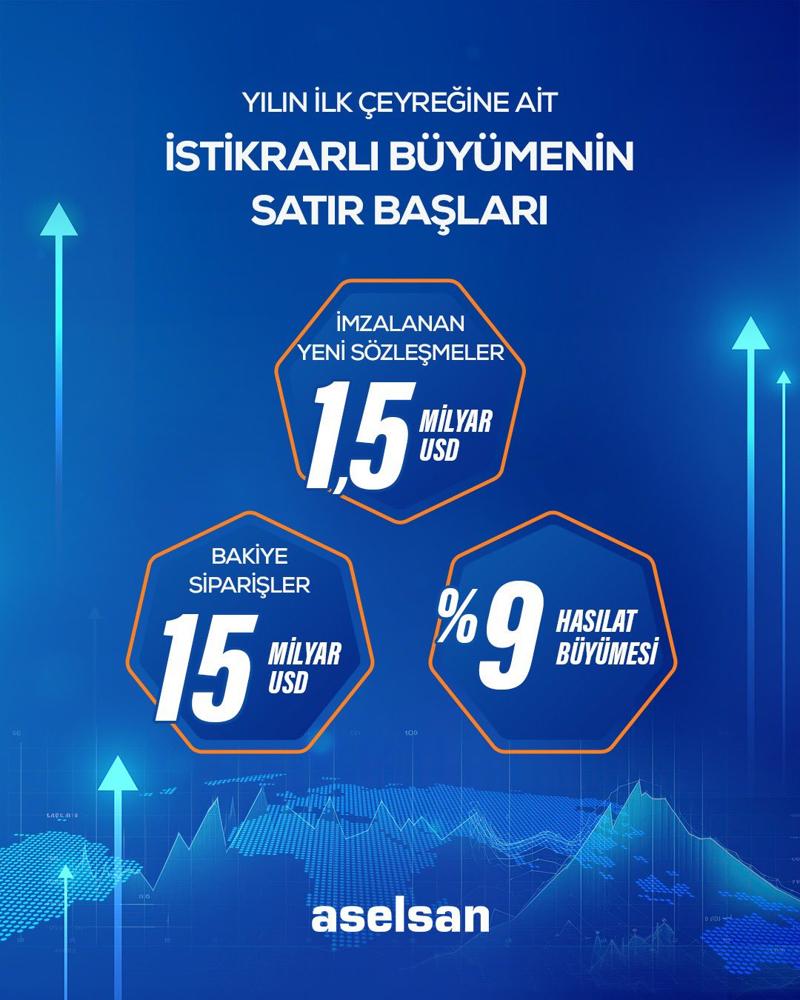 "Ciromuzu reel olarak yüzde 10 civarında büyütmeye devam ettik. Nakit akışımızdaki iyileşmeyi sürdürdük. İlk çeyrek sonuçlarımız, gelecek perspektifimizin olumlu seyretmeye devam ettiğini de gösteriyor. Bir önceki yılın aynı dönemine göre; alınan siparişlerin yüzde 46 artması müşterilerimizin ASELSAN'a olan güvenlerinin açık bir kanıtıdır. Özellikle yurt dışından alınan işlerin yüzde 220 artması, ihracat odaklı büyüme stratejimizle doğru yolda olduğumuzu gösteriyor."
