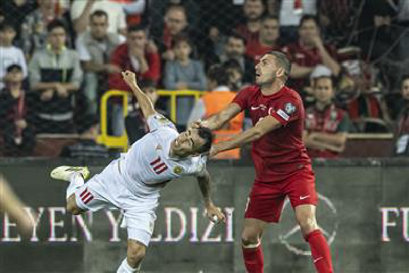 Ermenistan maçında ilk 11'de yer alan futbolcular ile karşılaşmada rakip oyuncuyla çarpışması sonucu kaşı açılan İrfan Can Kahveci, kamp yapılan otelde yenilenme çalışması gerçekleştirdi.