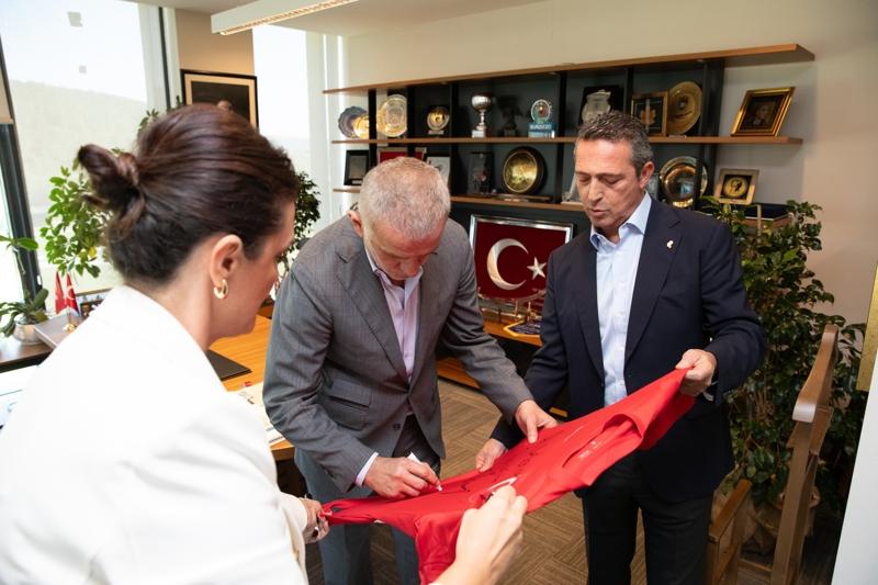 TFF Başkanı Hacıosmanoğlu, ziyaretin ardından Ali Koç'a özel olarak imzaladığı A Milli Takım forması hediye etti.
