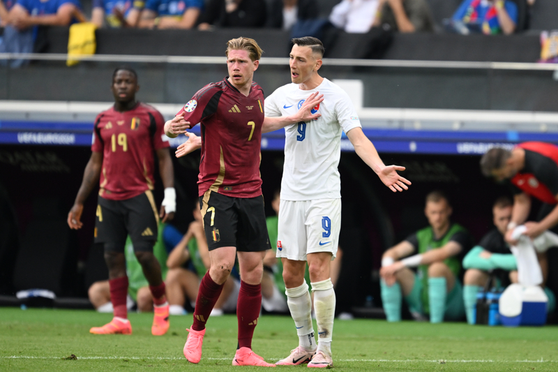 Frankfurt Arena'da yapılan maça hızlı başlayan taraf Belçika oldu. Romelu Lukaku ile ilk 5 dakikada iki pozisyona giren Belçika, istediğini bulamadı. Slovenya, müsabakanın 7. dakikasında Jeremy Doku'nun büyük hatası sonucunda Ivan Schranz ile 1-0 öne geçti. İlk yarının kalan dakikalarında iki takım da girdiği pozisyonlardan yararlanamayınca Slovakya devre arasına önde girdi.