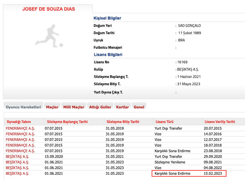 Beşiktaş, Josef de Souza'nın sözleşmesinin karşılıklı olarak feshedildiğini Türkiye Futbol Federasyonu'na (TFF) bildirdi.