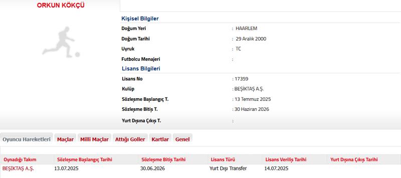 Beşiktaş, Orkun Kökçü'nün lisansını çıkardı.