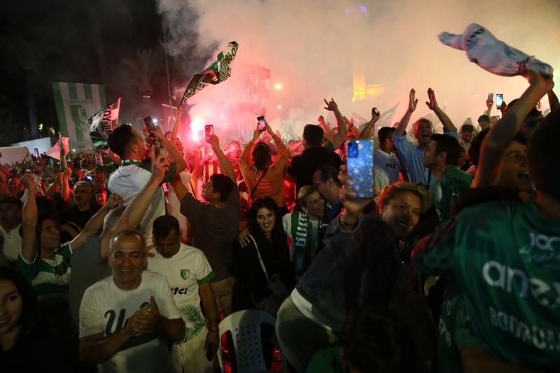 Trendyol 1. Lig play-off finalinde Sakaryaspor'u normal süresi 1-1 biten ve uzatmaya giden maçta 3-1 yenerek Süper Lig'e çıkan Bodrum FK'nin taraftarları, Bodrum Belediye Meydanı'nda kutlama yaptı.