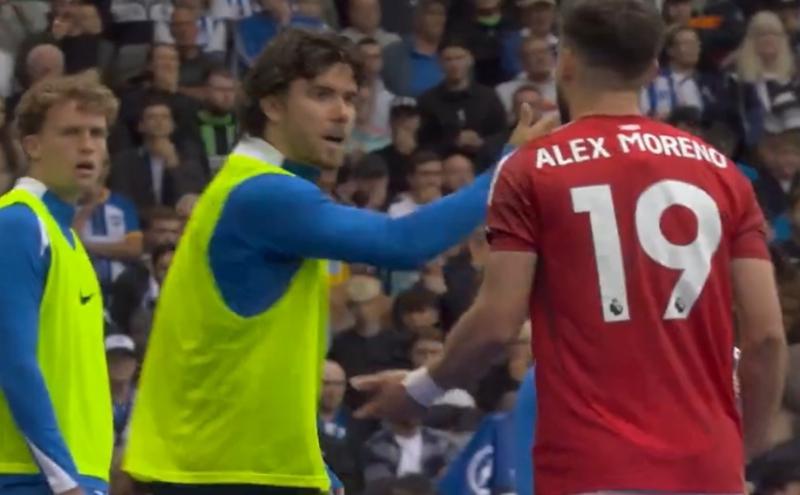 Maça yedek kulübesinde başlayan ve şans bulamayan Ferdi Kadıoğlu, ilk yarı ısınırken Alex Moreno ile tartıştı. Tartışmayı hakem Robert Jones sonlandırdı.