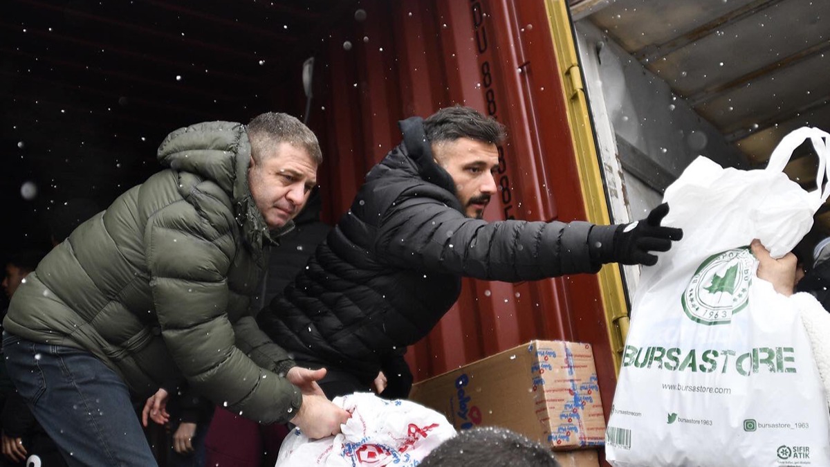 Yaşanan deprem felaketi sonrası Bursaspor'da önemli bir birliktelik söz konusu. Bursa Büyükşehir Belediye Stadyumu'nda 18 yardım tırını deprem bölgesine gönderen yeşil-beyazlı taraftarlar, bugün futbolcuları ve yöneticileri misafir etti. Bursaspor'un tüm futbolcuları, hem getirdikleri yardımlarla maddi, hem de manevi anlamda ciddi şekilde destek verdi. Yardım kolilerinin tırlara taşınmasına da yardım eden futbolcular, herkes tarafından takdir edildi. Aynı zamanda Bursaspor Başkanı Ömer Furkan Banaz ve yöneticiler de depremzedelere toplanan yardımlara katkı sağladı.