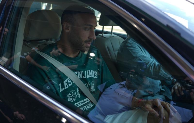 Havaalanında fotoğraf çektirmek isteyen taraftarları kırmayan Cenk Tosun, daha sonra kendisini bekleyen araca binerek alandan ayrıldı.