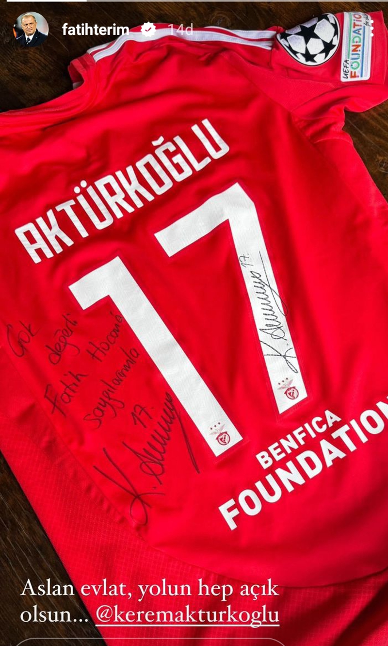 Kerem Aktürkoğlu'nun Terim'e gönderdiği formada ise, "Çok değerli Fatih hocama saygılarımla." sözleri yer aldı.
