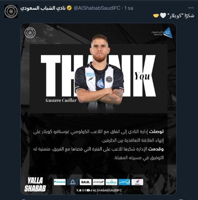 Suudi Arabistan Ligi'nde Fatih Terim'in çalıştırdığı Al Shabab, tecrübeli futbolcu Gustavo Cuellar ile yollarını ayırdı.