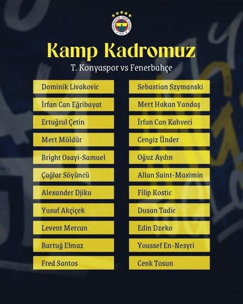 Süper Lig'de Konyaspor ile karşılaşacak Fenerbahçe, bu maçın kamp kadrosunu duyurdu.