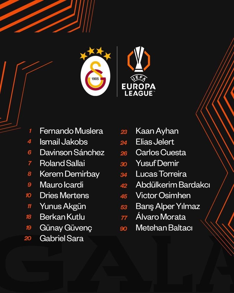 UEFA Avrupa Ligi'nde play-off maçları öncesinde Galatasaray'ın kadroya dahil ettiği isimler belli oldu.