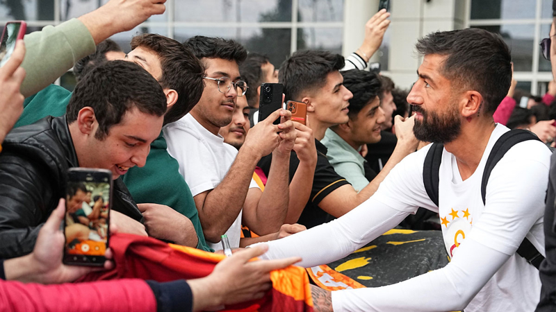 Galatasaray taraftarı, teknik direktör Okan Buruk ile futbolculara sevgi gösterisinde bulundu.