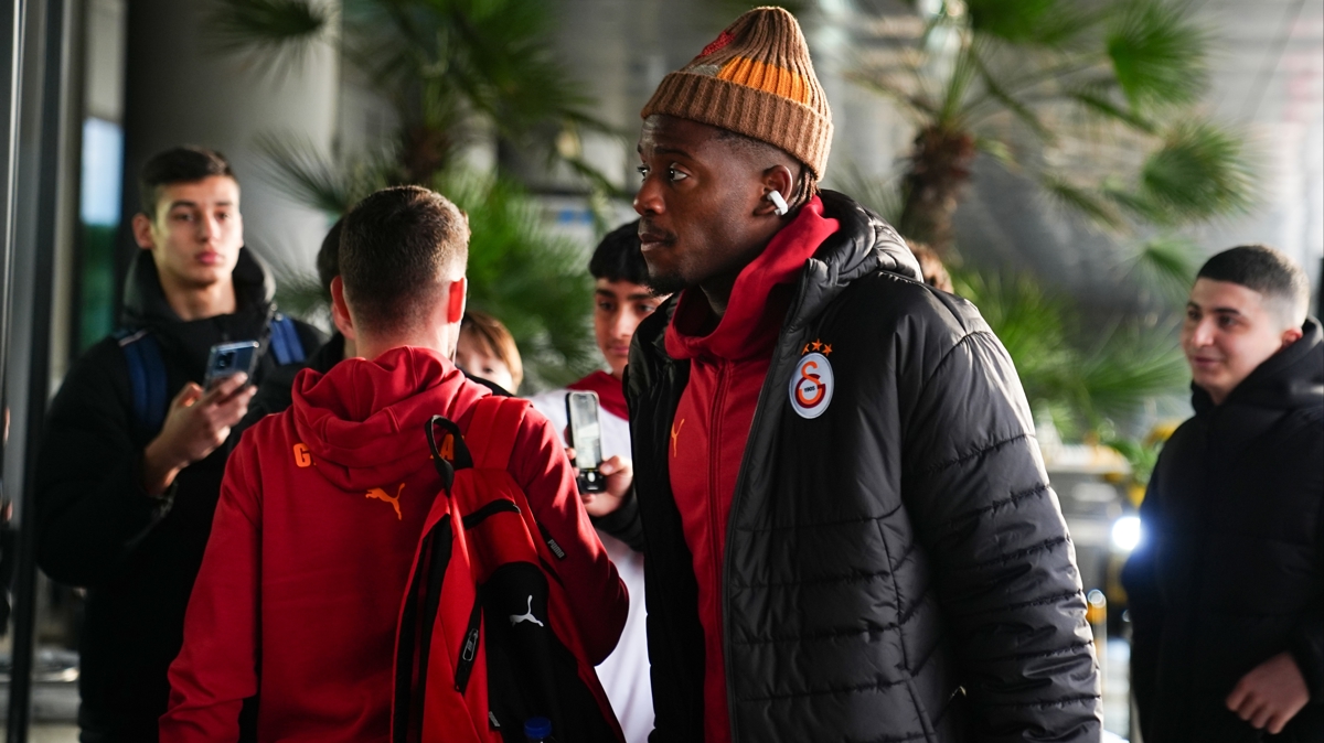 Sarı-kırmızılı futbolcular, havalimanı girişinde bulunan bir grup taraftarın fotoğraf ve imza isteğini geri çevirmedi.