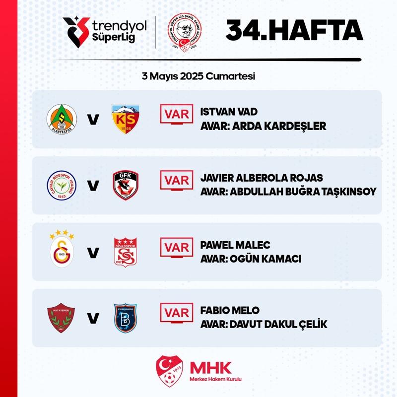 Galatasaray-Sivasspor maçının VAR hakemi belli oldu.MHK'den yapılan açıklamaya göre müsabakanın VAR koltuğunda Polonyalı Pawel Malec görev yapacak.<b>Öte yandan günün diğer maçlarındaki görevlendirmeler de duyuruldu:</b><img class='rich-text-photo' src='https://imgs.stargazete.com/imgsdisk/2025/05/03/gqa05zjwmaakiu8-03052025c6f74c75.jpg'/>