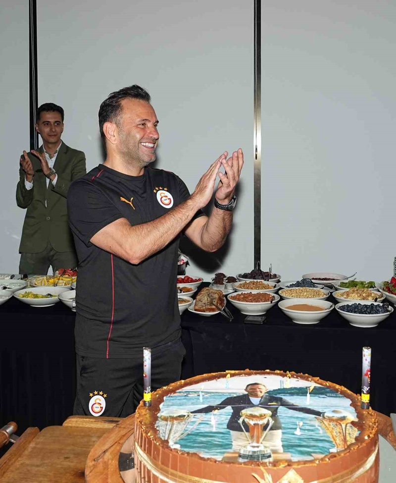 Trendyol Süper Lig'in 9. haftasında bugün Antalyaspor'un konuğu olacak Galatasaray bu müsabaka öncesinde Teknik Direktör Okan Buruk'un doğum günü kutlandı. Sarı-kırmızılıların kamp yaptığı otelde üzerinde düzenlenen kutlamada Buruk, Galatasaray'da kazandığı kupaların fotoğrafı olduğu pastayı üfledikten sonra tebrikleri kabul etti.