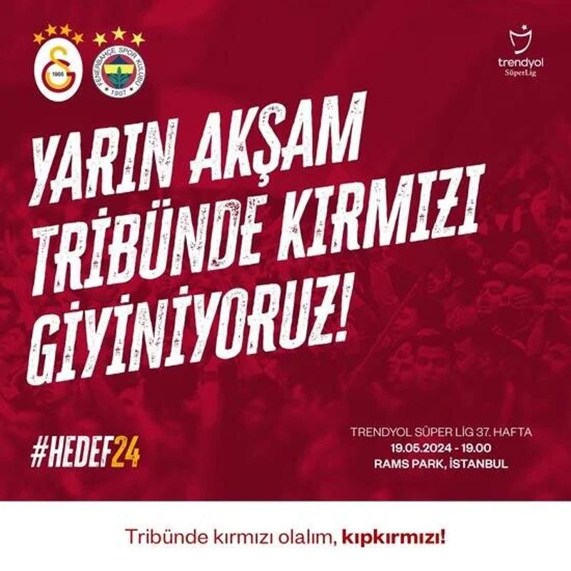 Sarı kırmızılı takım, derbiye gelecek taraftarlarına, "Yarın akşam Hedef 24 Yolunda tribünde kırmızı olalım, KIPKIRMIZI!" ifadelerini kullandı.