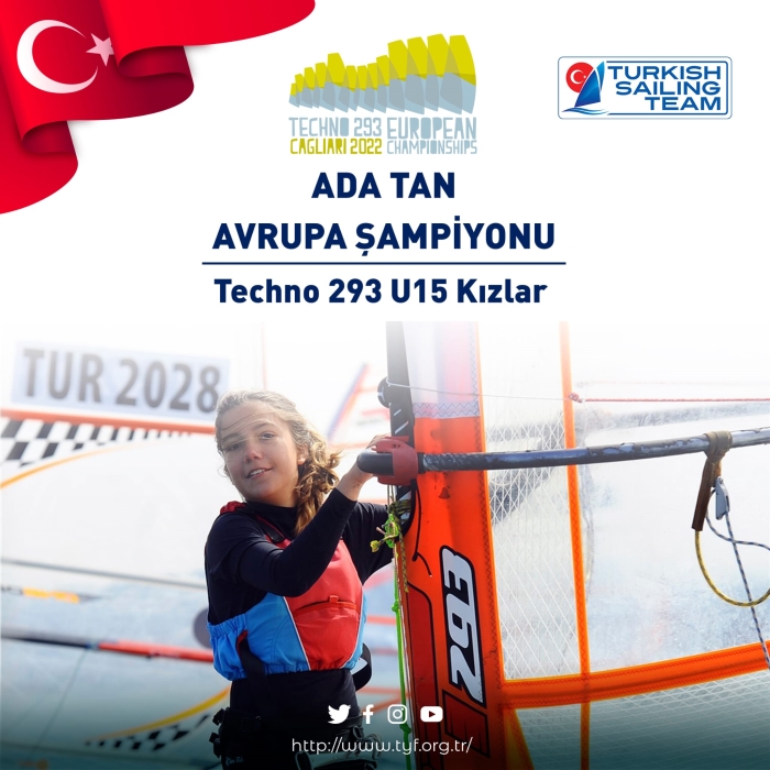 7 ülkeden 37 sporcunun katılım gösterdiği Techno 293 U15 Kızlar kategorisinde, Ada Tan (Urla Deniz Kulübü) Avrupa Şampiyonu oldu.