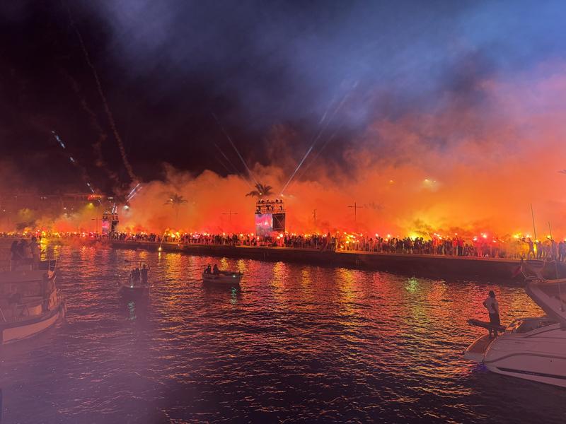 Sahilde havai fişek gösterisi yapıldı, taraftarlar gösteriyi izledi.