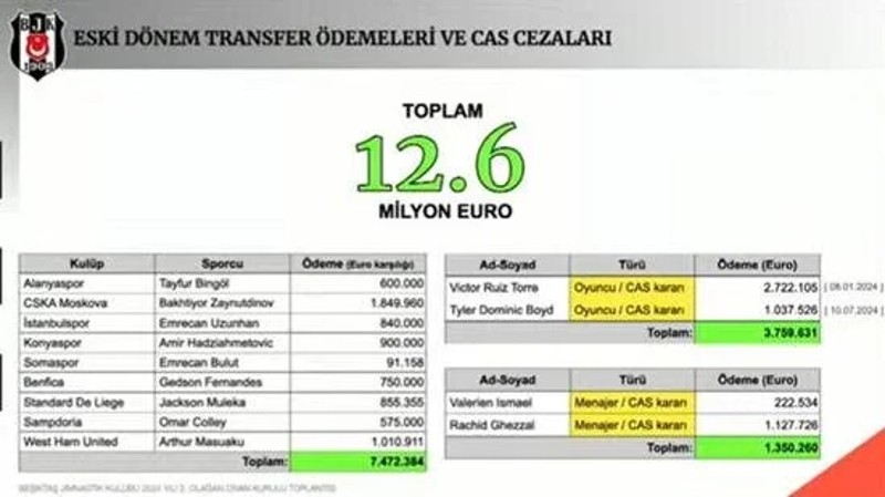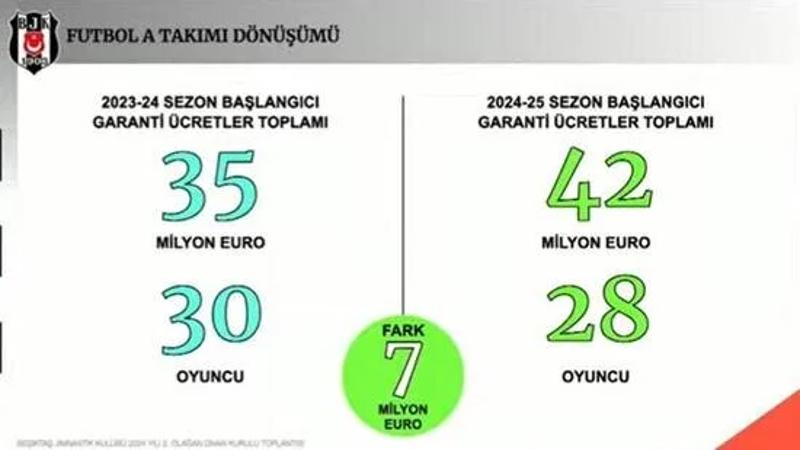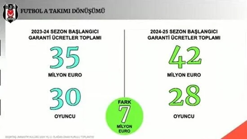 Beşiktaş Kulübü, 2024-2025 sezonunda 28 futbolcuya 42 Milyon euro garanti ücret ödeyecek.