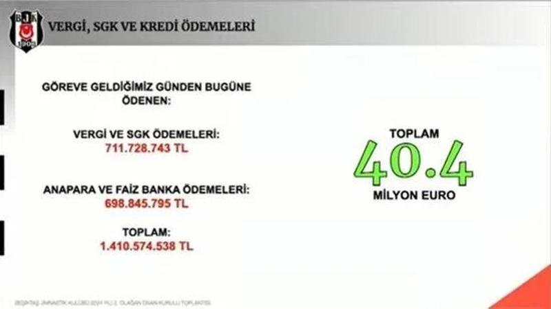 Beşiktaş Divan Kurulu'nda yeni yönetimin 53 Milyon euro ödeme yaptığı açıklandı.