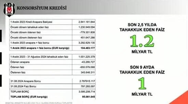 Beşiktaş Yönetimi, son 9 ayda 1 Milyar TL faiz ödendiğini duyurdu.