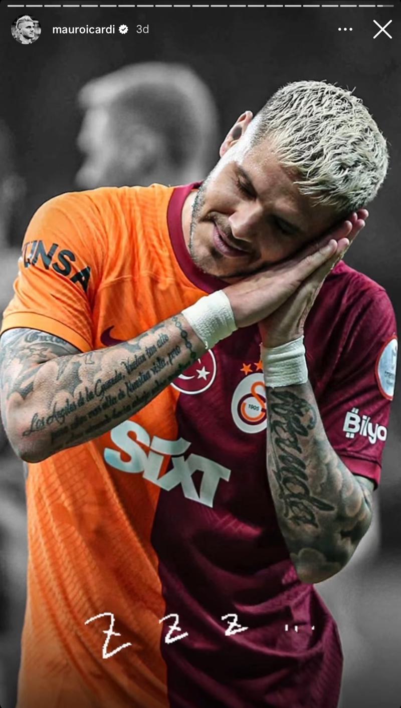 Bitime 3 hafta kalan puan farkının 6'ya çıkması sonrası Instagram hesabından bir paylaşım yapan Mauro Icardi, Hatayspor maçında yaptığı "uyku" sevincini paylaştı.