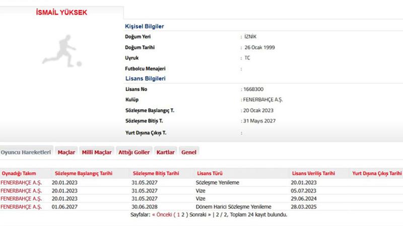 Milli futbolcu, sarı-lacivertli takımla sözleşmesini uzattı. Fenerbahçe yönetimi, İsmail Yüksek ile el sıkıştı ve sözleşmesini 2028'e uzattı.