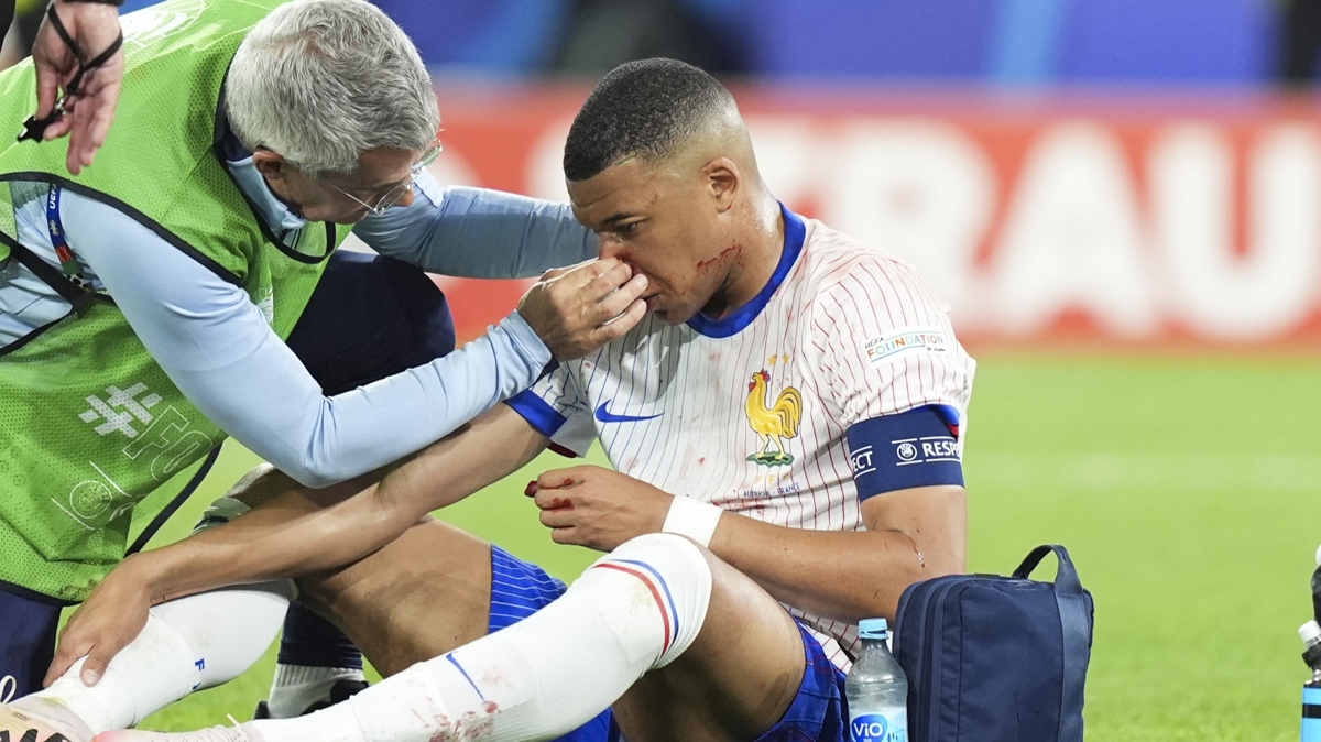 Fransa'nın yıldız futbolcusu Kylian Mbappe, takımının Avusturya'yı 1-0 yendiği maçın son dakikalarında girdiği ikili mücadelede rakip stoper Kevin Danso ile çarpıştı. Yerde kalan Mbappe kanlar içinde kalırken, yıldız oyuncunun yapılan ilk muayanesinde burnunun kırıldığı ortaya çıkmıştı. Maça devam edemeyen 25 yaşındaki futbolcu, yerini Olivier Giroud'ya bırakmıştı.