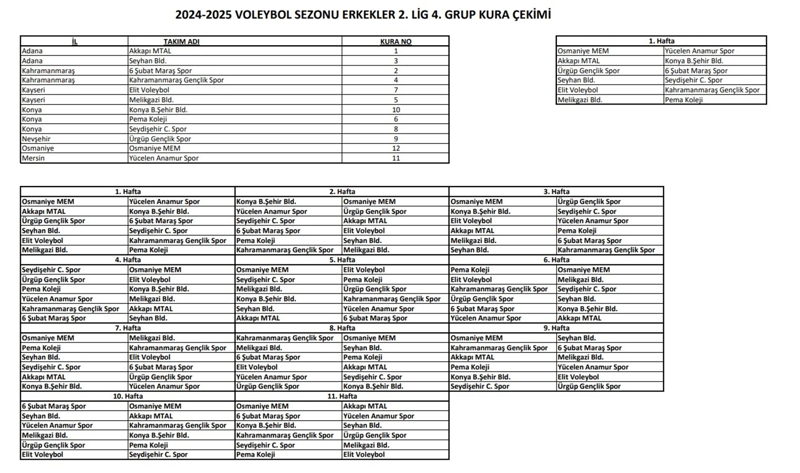 Türkiye Voleybol Federasyonu (TVF) Voleybol 2. Ligleri'nde 2024-2025 voleybol sezonunun fikstür çekimi, Türkiye Voleybol Federasyonu'nun Ankara Merkez Ofisi'nde yapıldı. Türkiye Voleybol Federasyonu'nun resmi sosyal medya kanalından yayınlanan kura çekimini, TVF Lig İşleri Danışmanı Recep Nurtanış ve TVF Lig İşleri Görevlisi Ebru Ezgi Alper gerçekleştirdi. Yapılan kura çekimi sonrası Kayseri ekibi Elit Voleybol Spor Kulübü, 2. Lig 4. Grup'ta mücadele edecek. Kayseri Elit Voleybol Spor Kulübü ligin ilk maçında evinde Kahramanmaraş Gençlikspor'u konuk edecek. Elit Voleybol Spor Kulübü ligin 4. haftada Ürgüp Gençlikspor ve 5. haftada Osmaniye MEM maçlarını arka arkaya deplasmanda oynarken ligin 6. haftasında ise Kayseri derbisinde ise Melikgazi Belediyespor ile karşı karşıya gelecek.