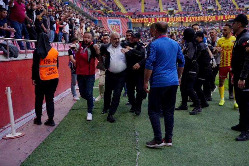 Kayserispor Başkanı Ali Çamlı, saha kenarına inerek yoğun bir tepki gösterdi. Sahaya girmek isteyen Ali Çamlı'ya kulüp yöneticileri güçlükle engel oldular.