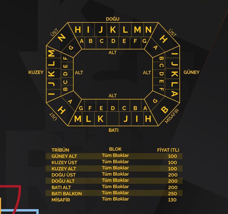 Doğu Alt Tribün bilet fiyatı: 200 TL.