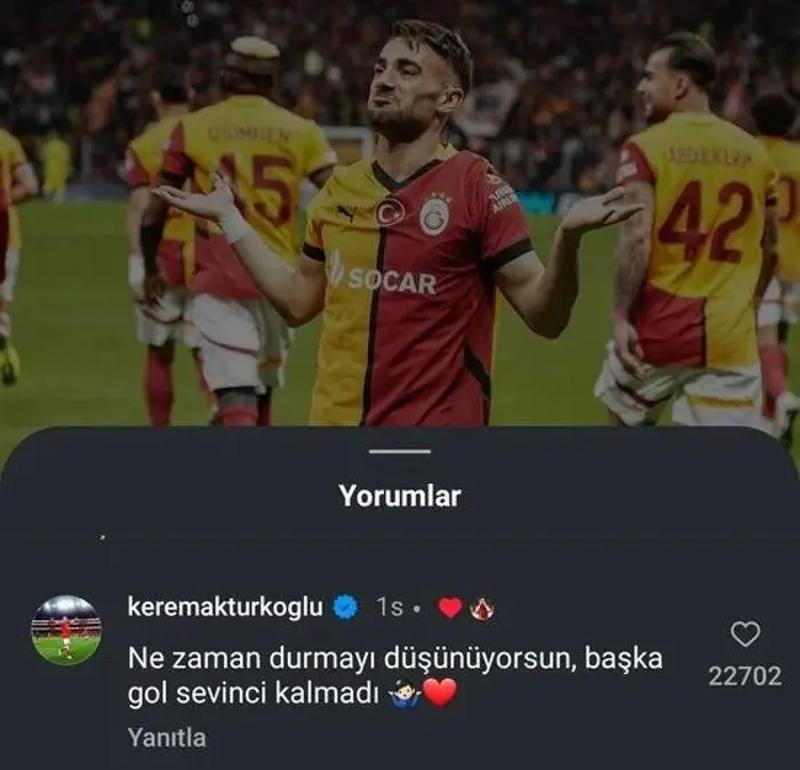 Tottenham ağlarını müthiş bir golle sarsan Yunus'un golün ardından Kerem Aktürkoğlu ile özdeşleşen sevinci yapması ve bu görseli Instagram'da paylaşması üzerine yorum yapan Kerem, "Ne zaman durmayı düşünüyorsun? Başka gol sevinci kalmadı." diyerek eski takım arkadaşını kutladı.