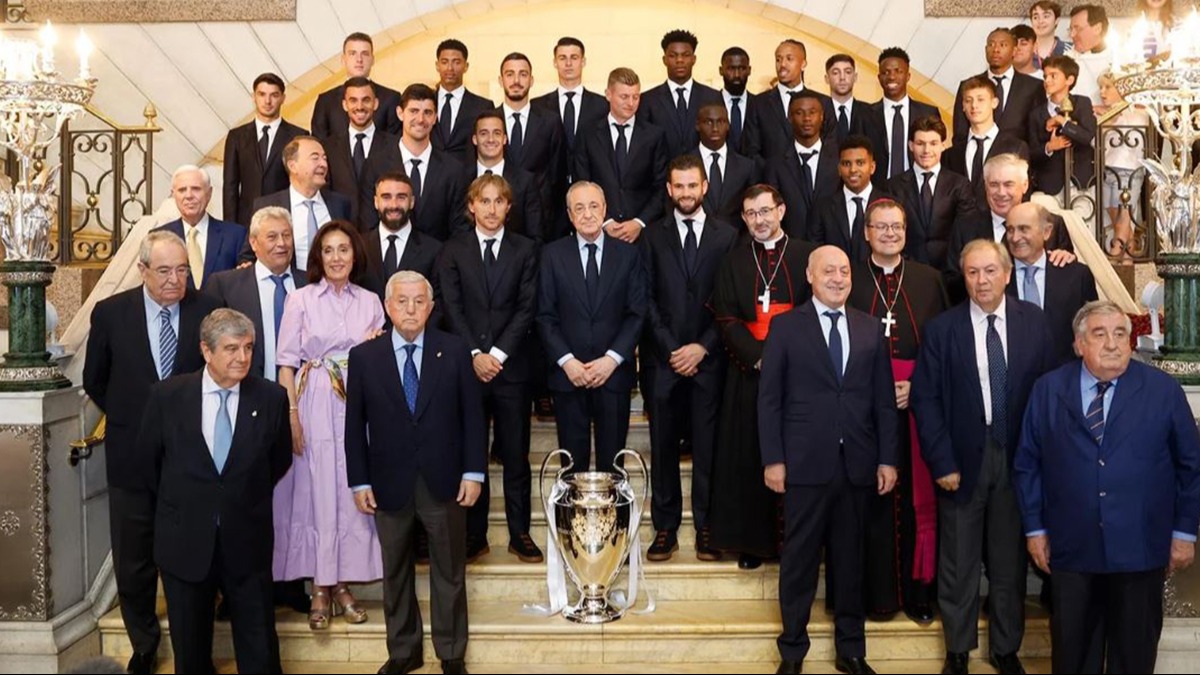 Tüm takım, Almudena Katedrali'nde taraftarla kupa sevincini yaşadı ve fotoğraf çekiminin ardından tören sona erdi.