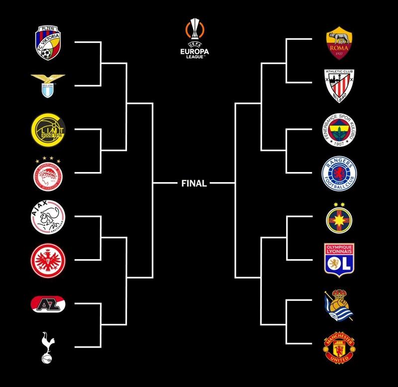 Fenerbahçe, UEFA Avrupa Ligi son 16 turunda Rangers ile eşleşirken turu geçmesi durumunda ise çeyrek finalde Roma (İtalya)-Athletic Bilbao (İspanya) eşleşmesinin galibi ile karşı karşıya gelecek.