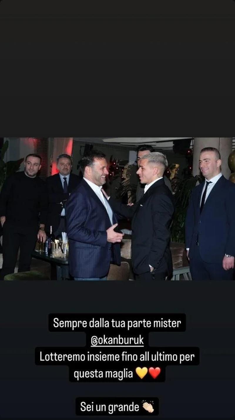 Galatasaray'ın yıldız oyuncusu Lucas Torreira, teknik direktör Okan Buruk hakkında bir paylaşımda bulundu.