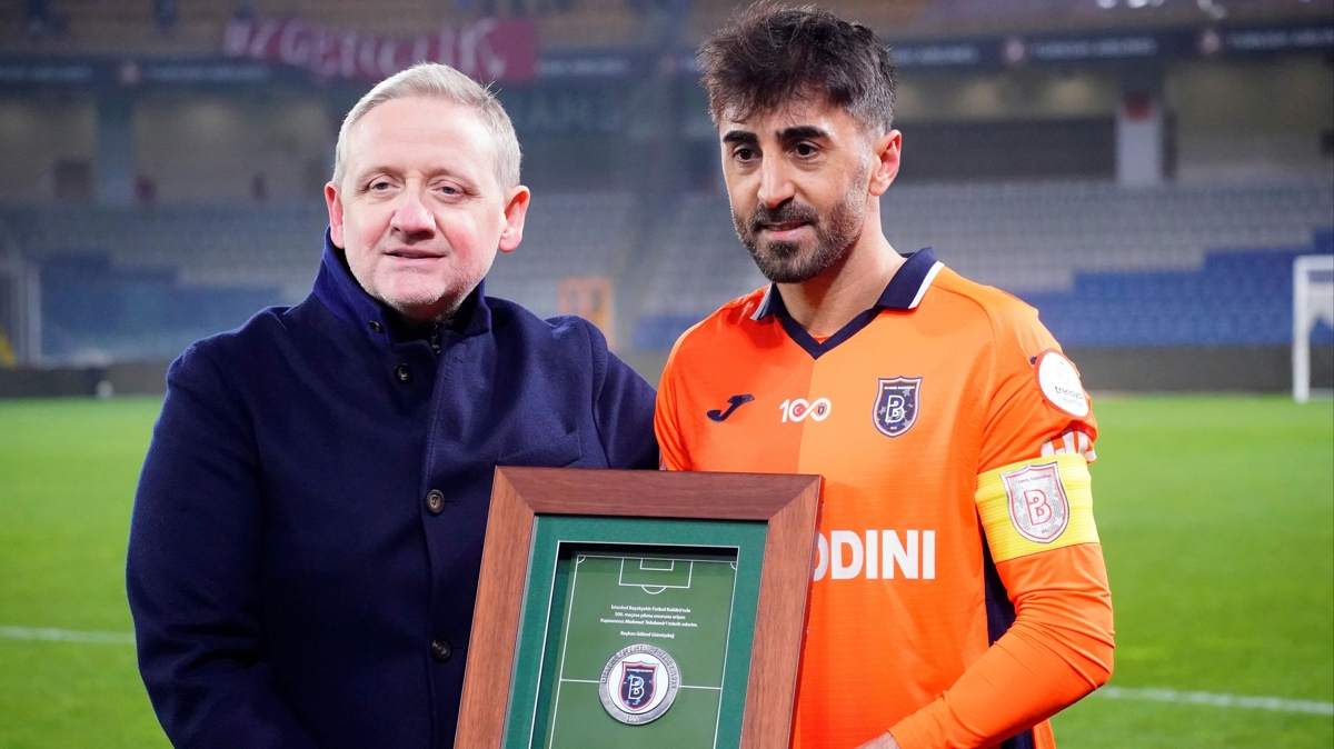 Başakşehir Başkanı Göksel Gümüşdağ, karşılaşmanın ardından Mahmut Tekdemir'e forma ve plaket hediye etti.