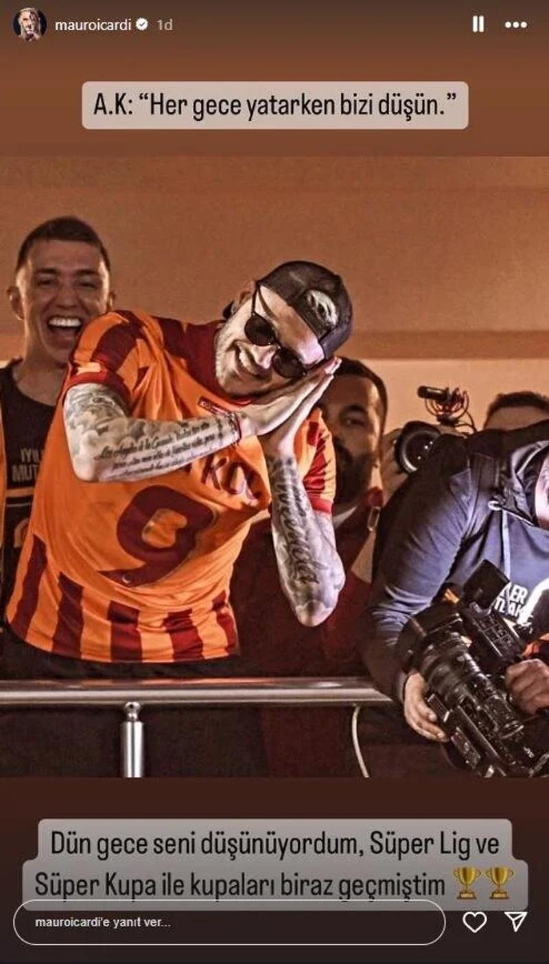 Arjantinli yıldız yaptığı paylaşımda Ali Koç'un "Her gece yatarken bizi düşün" sözlerini paylaştı. Bu paylaşımın altına ise "Dün gece seni düşünüyordum, Süper Lig ve Süper Kupa ile kupaları biraz geçmişim" ifadelerini kullandı.