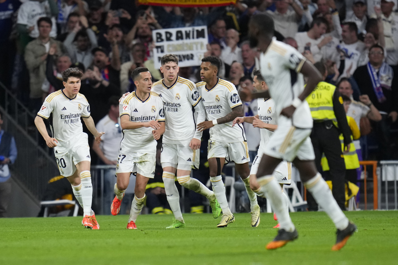 Kalede Lunin formasını korurken, savunma hattında Vazquez, Tchouameni, Rüdiger ve Camavinga; orta sahada Modric, Kroos, Valverde üçlüsünün önünde Bellingham; hücumda ise Rodrygo ve Vinicius yer aldı.
