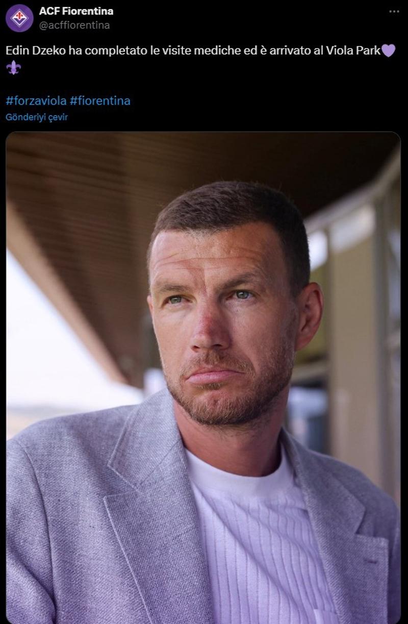 İtalyan ekibi, sosyal medya üzerinden Edin Dzeko'nun sağlık kontrollerinden geçtiğini duyurdu. Paylaşımda, "Edin Dzeko sağlık kontrollerini tamamladı ve Viola Park'a ulaştı" ifadesi yer aldı.