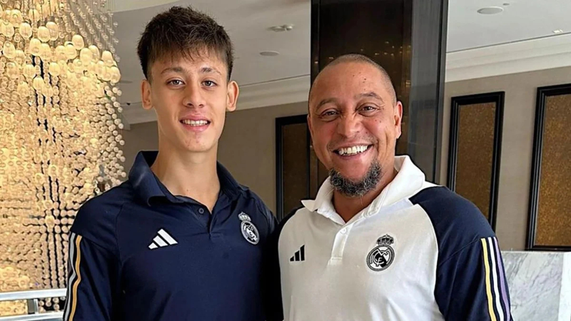 Real Madrid ile Şampiyonlar Ligi finali için geri sayımda olan Arda Güler, kulüp televizyonunda Fenerbahçe ve Real Madrid'in eski futbolcusu Roberto Carlos ile bir programa katıldı.