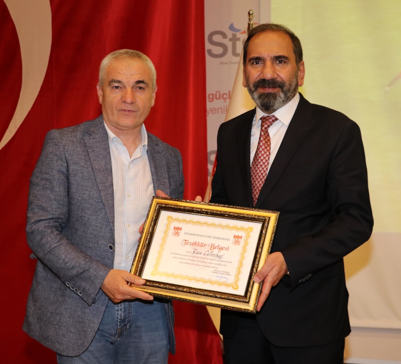 Süper Lig tarihinin 633 kez en fazla maça çıkan hocası olan Rıza Çalımbay, tarihe geçen başarılar yaşadığı Sivasspor'da onore edildi. Kongrede başkan Mecnun Otyakmaz, deneyimli hocaya plaketle teşekkür etti.