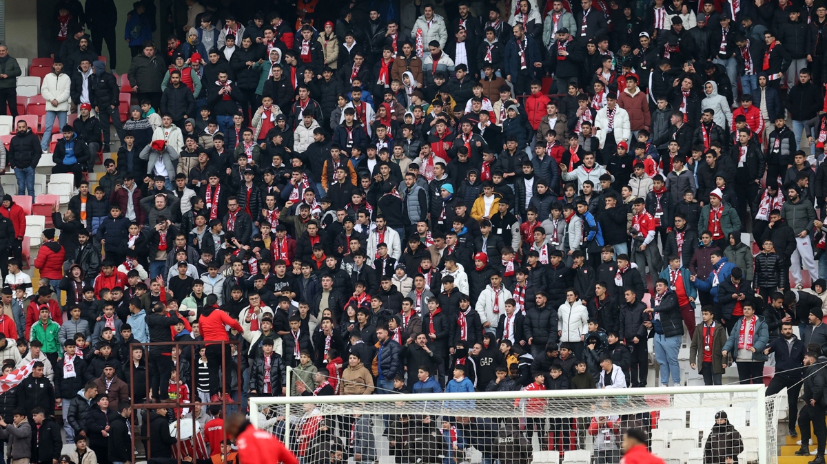 Kırmızı-beyazlı taraftarlar, 27 bin 532 kişi kapasiteli Sivas 4 Eylül Stadı'nın tribünlerini büyük oranda doldurarak, önemli maçta takımlarına destek verdi.