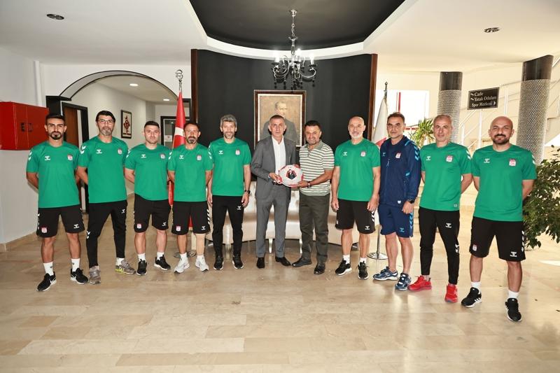 Eken ve Sivasspor yönetim kurulu üyeleriyle bir süre sohbet eden Hacıosmanoğlu ve Otyakmaz, yeni sezonun Türk futboluna hayırlı olmasını diledi.