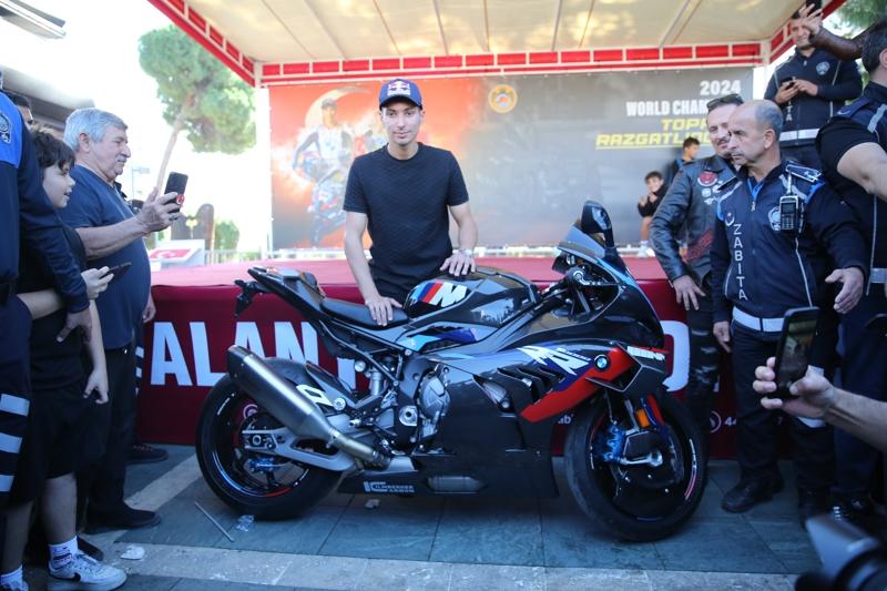 2024 Dünya Superbike şampiyonu milli motosikletçi Toprak Razgatlıoğlu, Antalya'nın Alanya ilçesinde coşkuyla karşılandı.