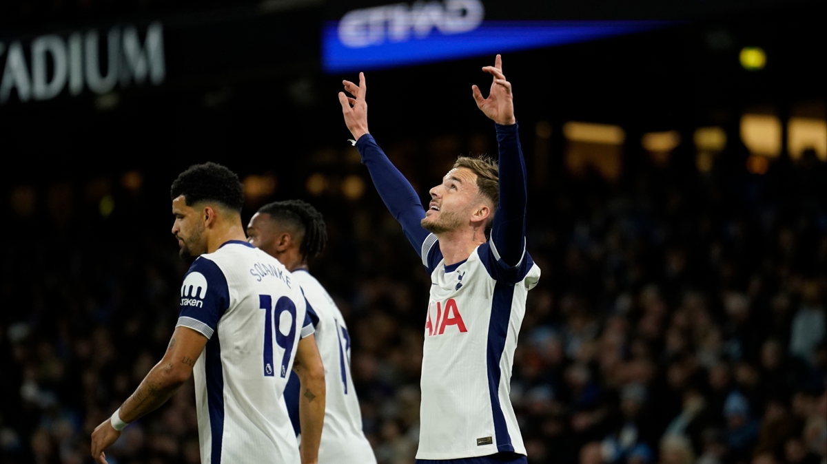 Etihad Stadyumu'nda oynanan maçta Tottenham'ın gollerini 13 ve 20. dakikalarda James Maddisoni 52. dakikada Pedro Porro ve 90+3'te Brennan Johnson kaydetti.