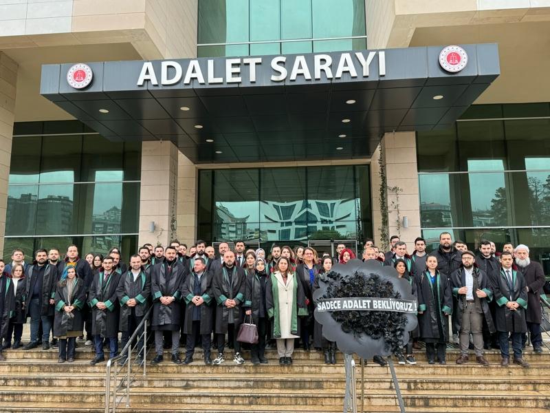 Adalet Sarayı önüne "Sadece adalet bekliyoruz" yazılı siyah çelenk bırakan 61 avukat, Trendyol Süper Lig'in 30. haftasında 17 Mart Pazar günü Trabzon'da oynanan Trabzonspor - Fenerbahçe maçının ardından çıkan olaylara karıştıkları iddiasıyla 5 taraftarın dün tutuklanması kararının hukuka aykırı olduğuna dikkat çektiler. Trabzon Barosu Başkanı Duygu Keleş Aydın önderliğinde sessizce bir süre adliye binası önünde bekleyen avukatlar ardından alkışlar eşliğinde ayrıldılar.