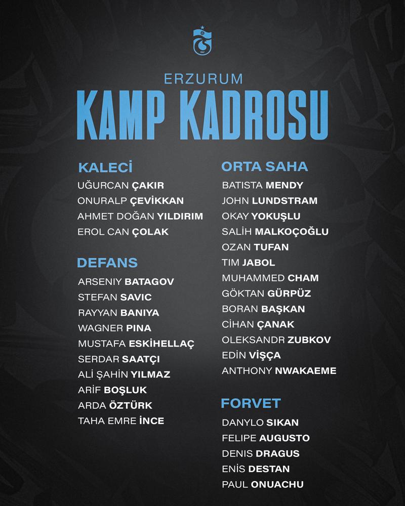 Uğurcan Çakır, Ahmet Doğan Yıldırım, Onuralp Çevikkan, Erol Can Çolak, Mustafa Eskihellaç, Wagner Pina, Arif Boşluk, Arda Öztürk, Taha Emre İnce, Ali Şahin Yılmaz, Rayyan Baniya, Stefan Savic, Serdar Saatçı, Arseniy Batagov, John Lundstram, Salih Malkoçoğlu, Ozan Tufan, Muhammed Cham, Okay Yokuşlu, Batista Mendy, Tim Jabol, Cihan Çanak, Boran Başkan, Edin Visca, Oleksandr Zubkov, Anthony Nwakaeme, Göktan Gürpüz, Denis Draguş, Enis Destan, Danylo Sikan, Paul Onuachu, Felipe Augusto